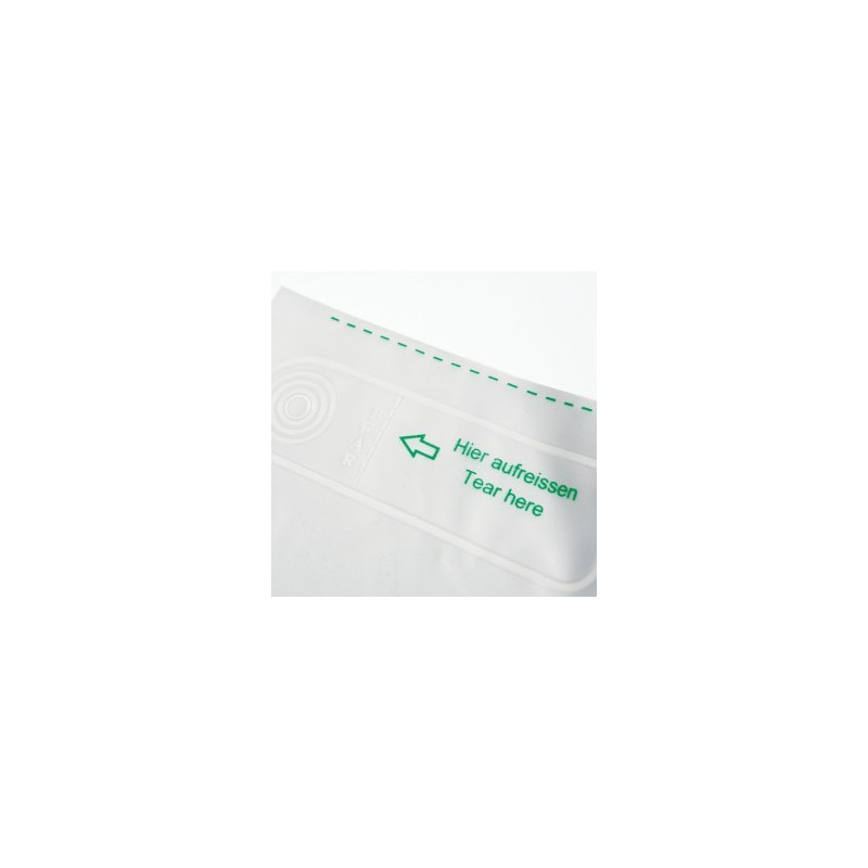 Urinbeutel mit 1.500 ml Volumen, 110 cm Schlauchlänge und Aufreißnaht, auch für den Einsatz mit Urinalkondom.