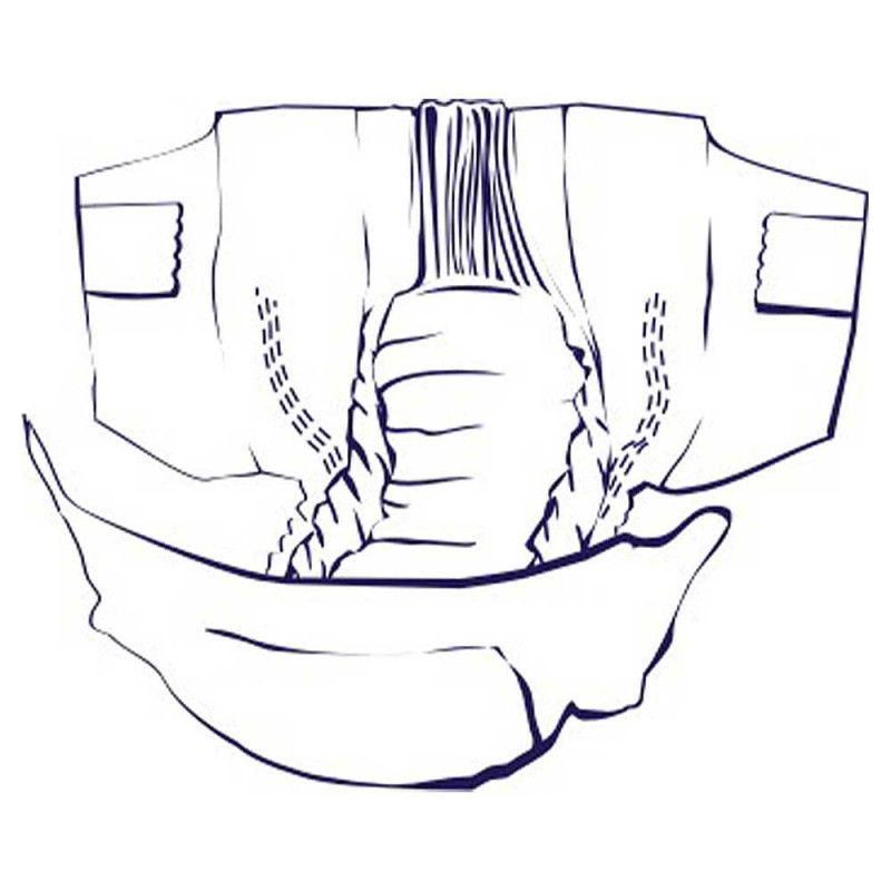 Ein anatomisch geformtes Saugkissen aus Zellstoff mit Superabsorber. Die spezielle EDS-Schicht sorgt für eine schnelle Verteilung und Aufnahme der Flüssigkeit in den Saugkern. Flüssigkeitsabweisender, seitlicher Auslaufschutz. Elastisches Garn im Schrittbereich schützt vor Flüssigkeitsauslaufen. Elastisches Seitenbündchen. Zwei elastische Klettverschlüsse wiederverschließbar. Farbiges Frontband zum mehrmaligen Befestigen der Klettverschlüsse. Nässeindikator - die Anzeige ändert sich beim Kontakt mit Feuchtigkeit im Inneren des Produktes von gelb auf grün. Atmungsaktive Isolationsschicht aus einem dampfdurchlässigen Material im zentralen Bereich und einem Vlies im Hüftbereich.